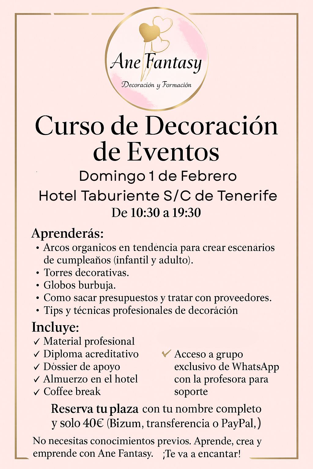 - Experiencia Inigualable: Con más de 15 años de experiencia en el campo de la decoración de eventos, Ane Fantasy y su equipo ofrecen una formación profunda y actualizada. Aprenderás de los mejores en la industria, con técnicas probadas y una sólida base de conocimiento.
